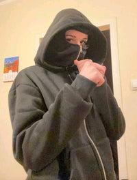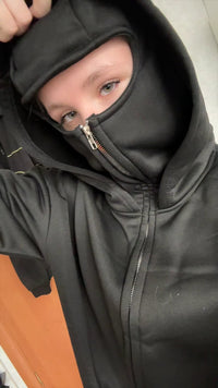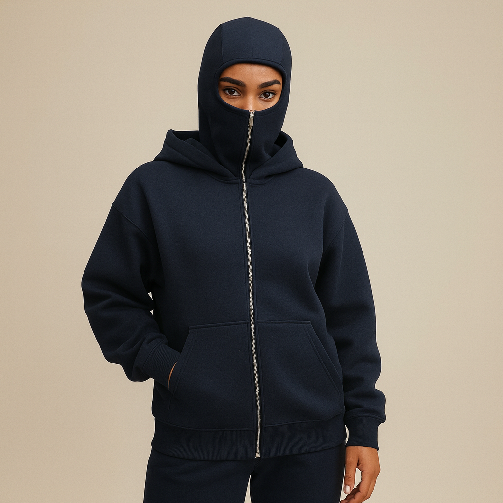 La capuche intégrale se prolonge en couvre-visage zippé pour une protection modulable. En un geste, tu passes d’une capuche classique à une barrière discrète contre vent et froid. Le tissu est doux et respirant, garde la chaleur sans étouffer, et le zip glisse sans tirer ni pincer. L’ouverture autour des yeux reste nette pour une visibilité parfaite — idéal pour les trajets, les soirées fraîches et les looks urbains.